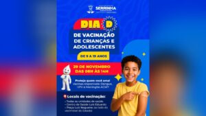 A Prefeitura de Serrinha promove, neste sábado, o Dia D de Vacinação voltado para crianças e adolescentes de 9 a 19 anos. A ação reforça a importância da imunização e disponibiliza três vacinas essenciais: Dengue, HPV e Meningite ACWY.
