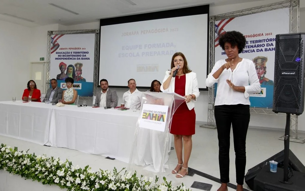 Ao longo da jornada pedagógica os profissionais da rede estadual discutem sobre o currículo do ensino médio para pensar os seus “Desafios e Avanços” no ano de 2023. Para facilitar o diálogo, uma das convidadas foi Deyse Lago, vice-reitora da Universidade do Estado da Bahia (Uneb). A transmissão para todo o estado foi feita através do canal do Youtube da Secretaria de Educação.