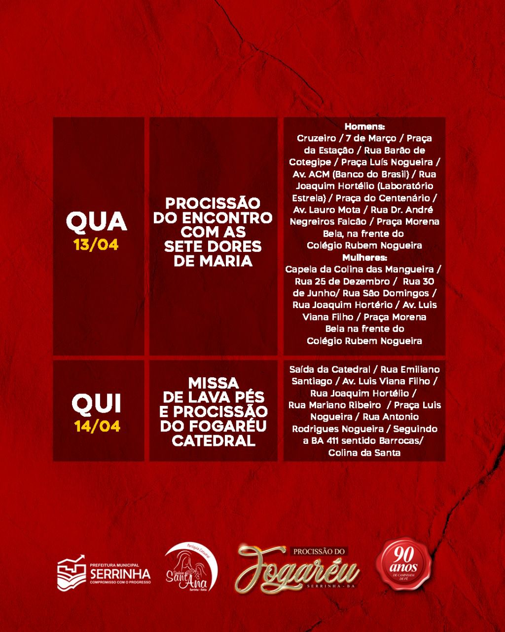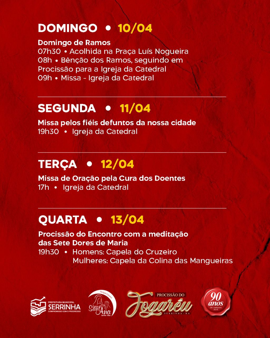 Serrinha: 90 Anos de Fé. Confira a programação da Semana Santa