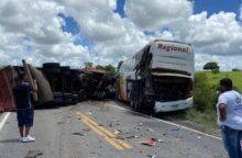 Um grave acidente envolvendo uma carreta carregada de piso, com placa do estado do Paraná, e um ônibus da empresa Regional que seguia para a cidade de Paulo Afonso, ocorreu por...