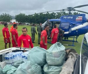 No domingo (28), equipes de bombeiros do 17º BBM, em Barreiras, em conjunto com o Grupamento Aéreo da Polícia Militar da Bahia (Graer), entregaram 40 cestas básicas e 10 fardos de água às comunidades de Muquém de São Francisco, Angico, Mangatuba, Reforminha do Mel, Ziados, Fazenda Veneza e Divineia. A ação, que tem o apoio de um helicóptero, visa alcançar áreas isoladas, onde o acesso por barcos e veículos terrestres é impraticável.