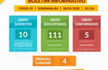 No boletim desta sexta-feira, 08/05, a Prefeitura de Serrinha informa que a cidade mantém um total de 5 casos confirmados de Coronavírus, sendo que 4 pessoas já estão curadas. Foram feitas mais...