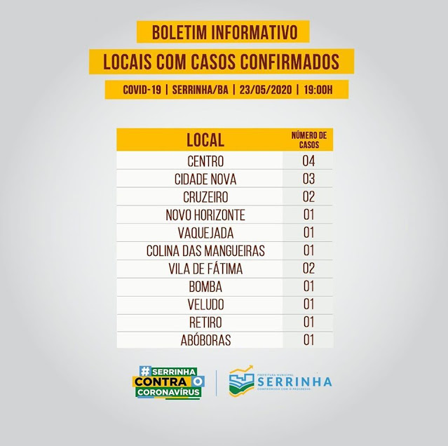 A cidade de Serrinha registra 58 casos suspeitos, 153 casos descartados e 12 casos positivos. O paciente identificado hoje com COVID 19 é um jovem de 18 anos, do sexo masculino e morador de Serrinha.