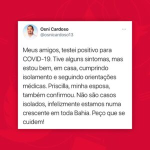 Em nota divulgada nas redes sociais, o deputado informou que ele e a esposa contraíram o vírus e apelou para que as pessoas se cuidem.
