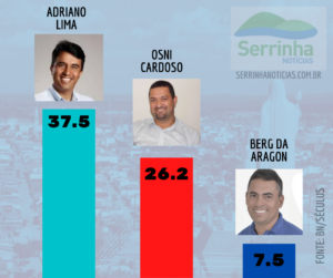 Segundo matéria publicada pelo portal Bahia Notícias, um dos maiores e mais respeitados do estado, o atual prefeito de Serrinha, Adriano Lima (PP), está na frente da corrida eleitoral na cidade, segundo o levantamento feito pelo próprio site em parceria com a Séculus Análise e Pesquisa. O gestor é o mais citado nos levantamentos espontâneo e estimulado e sua administração foi bem avaliada pelos 600 entrevistados pela pesquisa. O deputado estadual e ex-prefeito, Osni Cardoso (PT), aparece no segundo lugar, mas tem o maior índice de rejeição.