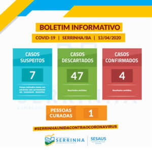 No último boletim de ontem, 13/04, a Prefeitura informou que foram feitas mais 6 notificações, subindo para 7 o número de casos suspeitos que aguardam resultado do exame feito pelo LACEN.