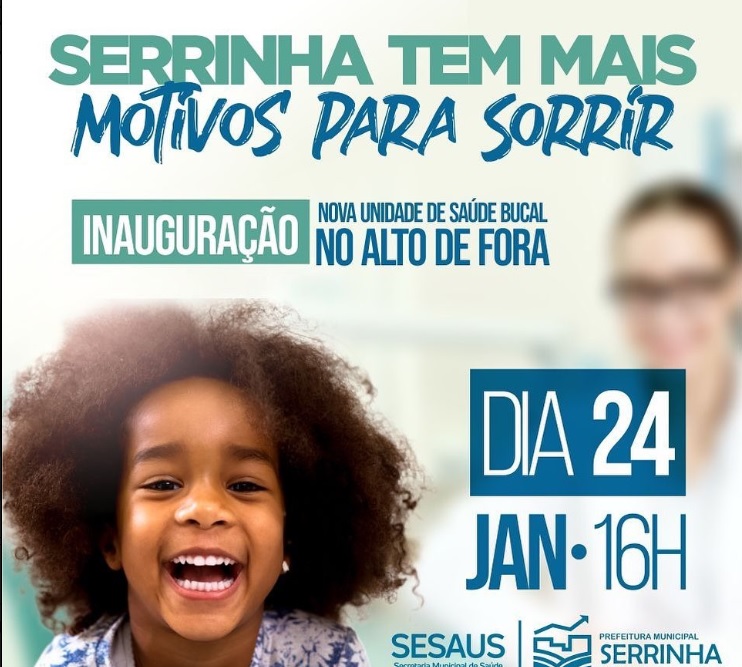A semana começa com uma ótima notícia, na área de Saúde, para todos os serrinhenses. Na próxima sexta-feira, 24.01, será entregue um novo posto de Saúde Bucal na comunidade do Alto de Fora.