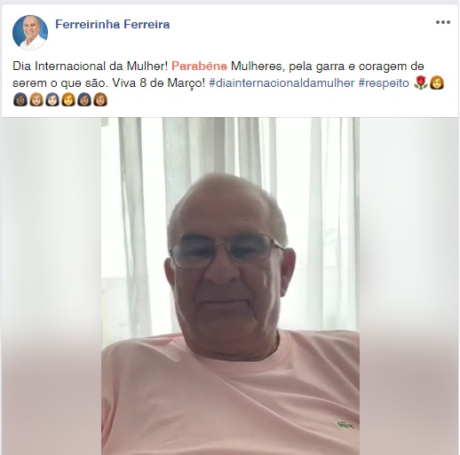 Utilizando suas redes socias, o médico e pré-candidato a prefeito de Serrinha Dr. Ferrerinha publicou vídeo com homenagem às mulheres nesse 8 de Março.
