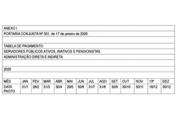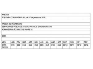 Publicada tabela de pagamento do funcionalismo estadual em 2020