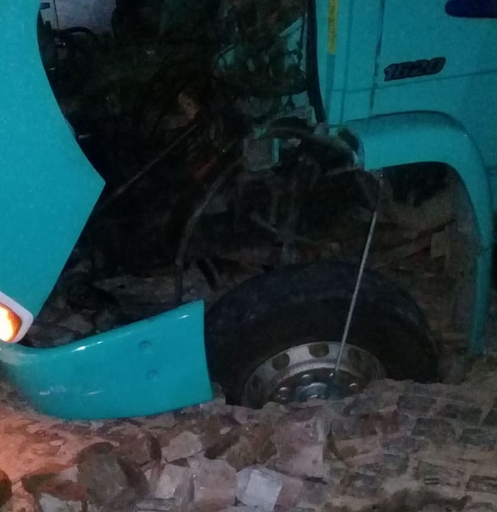 Na noite desta segunda-feira (2), um caminhão caiu dentro de um buraco às margens da BA-409 na entrada do Residencial Recanto das Flores no Bairro do Cruzeiro em Serrinha.
