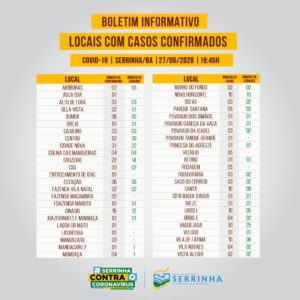 A Prefeitura de Serrinha informa que neste sábado, 27.06, houve a confirmação de mais 3 casos da Covid-19, atingindo um total de 306 casos positivos.